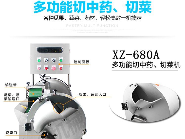 XZ-680A多功能切菜機,一機多用,可切葉菜及根莖類蔬菜,并可切片、絲、條、丁、段,碎等,切菜規(guī)格可根據(jù)不同需要調(diào)節(jié)尺寸,方便快捷。隨機共配送三套刀具。