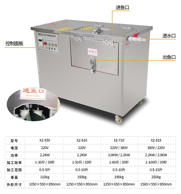 型號 | XZ-550去魚鱗機 | XZ-610去魚鱗機 | XZ-710去魚鱗機 | XZ-815去魚鱗機 |