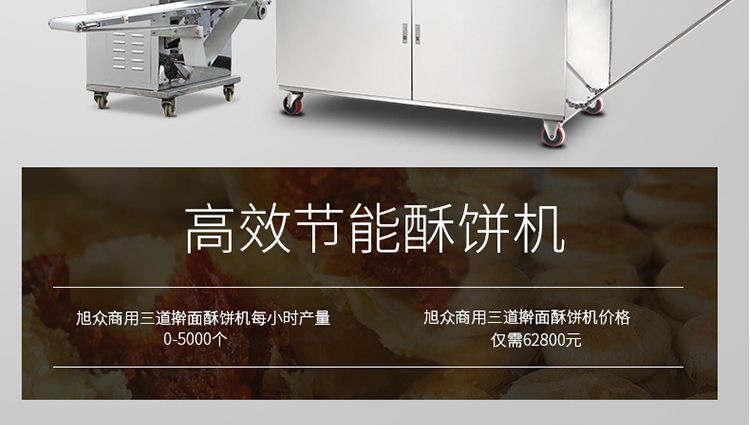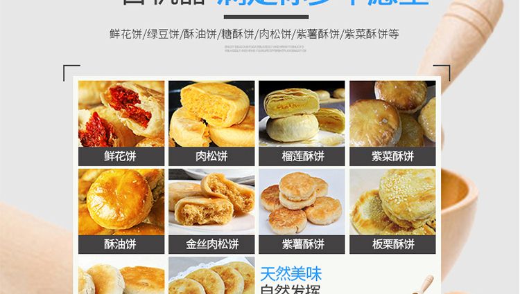 XZ-15C三道搟面酥餅機(jī),仿手工制作面食產(chǎn)品的機(jī)型,占地面積小,重量輕,運(yùn)用搟面杖壓面和打擊面團(tuán),以保證高面筋性和面帶的密度,并綜合考慮面食的口感而研發(fā)??缮a(chǎn)東北糖酥餅,東北大香酥餅,蘇式月餅,芝麻餅,鮮花餅,老婆餅。購(gòu)機(jī)免費(fèi)提供工藝技術(shù)